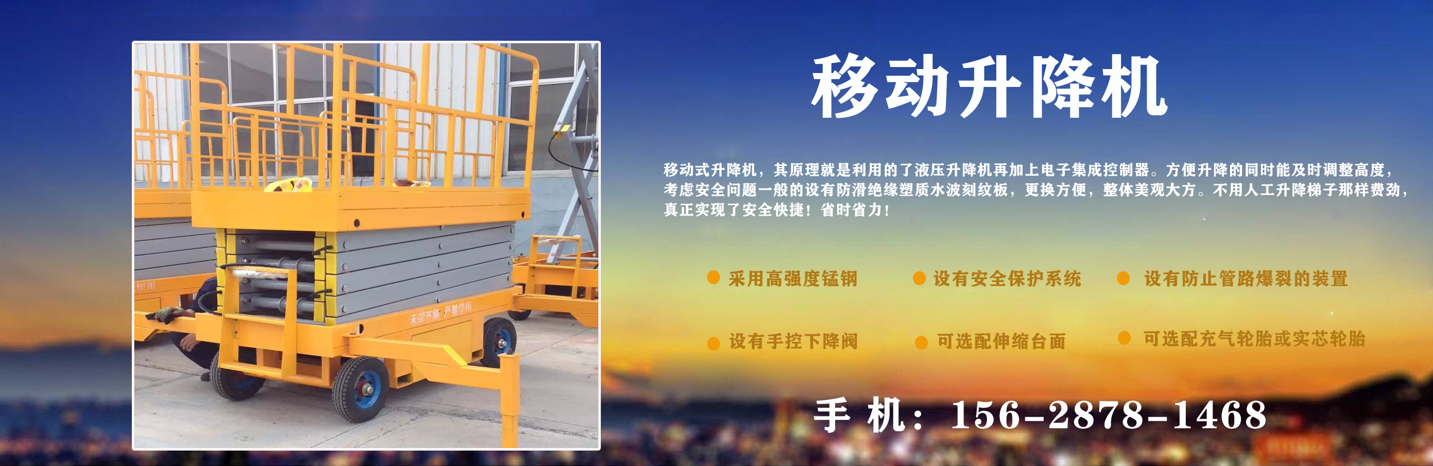 濟南中升機械制造有限公司主營移動升降機,小型移動升降機,移動式升降機,移動剪叉升降機,移動剪叉式升降機等產品,信譽良好,歡迎前來咨詢訂購!  在銷售上,尊重每一個客戶,做到保質、保量及時供貨;在售后服務上,以較短的時間,用較快的速度解決,終身追蹤服務?! 」臼冀K以“品質為本,服務至上”為公司宗旨。致力于提供高品質的產品,完善的服務,快捷的供貨,無論您身處何方,都能感受到我們的優良服務??蛻糁辽?,誠信為本?! g迎各界朋友來電,來函垂詢,選購!...